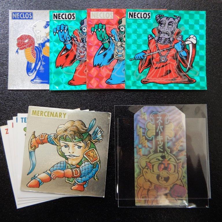 ゼウスは初期アルバム版っぽいですが、入荷の感じからして恐らくチョコ封入分。デビルは初期の黄色台紙紙素材ver,です。共に経年劣化感が殆ど無く非常に綺麗ですが台紙側にシミ(ゼウスは上辺プリ欠け)。入手後ほぼ触らず保管されていたみたいですが、シミは湿度の問題なので割とどうしようもない所。40年前のシールで素人さん保管だとこの状態でもまぁ出てこないと思います。ゼウスは10万台・デビルは20万台にて出品予定です。