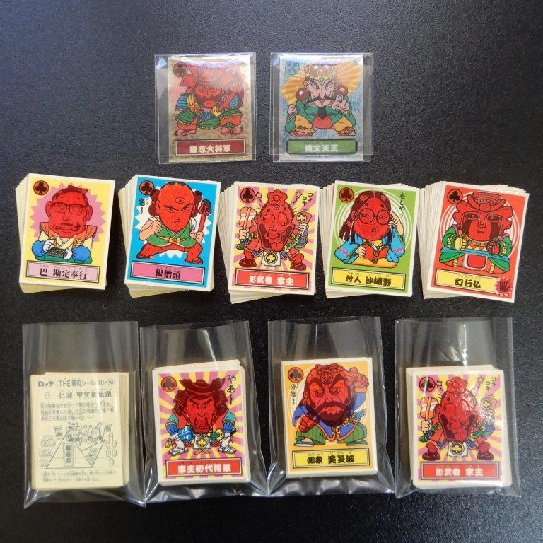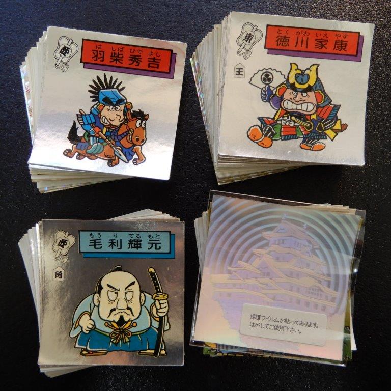 本日もマイナーシールより【対決!戦国時代】各種。なかなか人気のあるシリーズで、近年は単価も上がってきているように感じます。特に2弾のプリズムが凄く高くなってますね。入荷も少ないので封入率がかなり低かったのではないでしょうか。1弾は将棋の駒有り・駒無しバージョンが存在し、駒無しが初期版で若干流通も少な目となります。